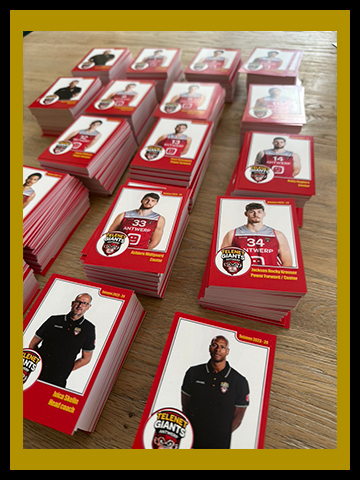 Op deze samenwerking zijn we erg trots. De fanclub van de Antwerp Giants vroegen ons kaarten te ontwerpen en te produceren van hun profploeg. Ze treden aan in de BNXT League.